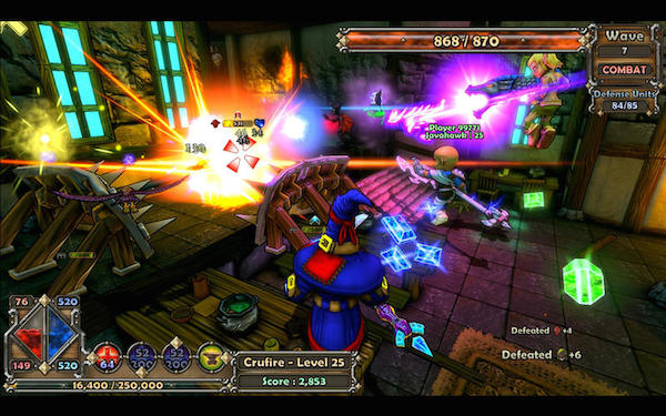 在新作中,四位英雄有兩個(gè)獨(dú)立的魔法儲(chǔ)備。一個(gè)用于塔防建設(shè),一個(gè)用于行動(dòng)技能。這樣分開(kāi)后,兩者就不會(huì)出現(xiàn)相互制約的情況。物理效果在新作中的作用更加重要。比如,凍結(jié)一個(gè)敵人可使它受到的炮彈傷害上升,也會(huì)使它的移動(dòng)速度減慢。一個(gè)旋風(fēng)陷阱會(huì)對(duì)凍住的敵人造成更多傷害。這樣也使得游戲?qū)F(tuán)隊(duì)合作的要求更為嚴(yán)格。