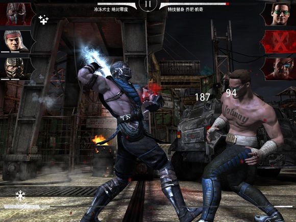 沒什么技巧,首先你要有兩格能量然后:當(dāng)敵人打完3拳后,速度打他3拳然后用一段冰住,然后再打3,再用一段冰住,最后打他4拳.由圖片可以看出強(qiáng)尼K滿血被連成殘血。