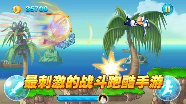 海賊跑酷是一款戰(zhàn)斗型跑酷游戲,畫面與手感俱佳。受到四皇“紅發(fā)”香克斯的影響,蒙其·D·魯夫開(kāi)始出海當(dāng)海賊。在冒險(xiǎn)途中,原賞金獵人索隆、討厭海賊的小偷 娜美、西羅布村的吹牛大王 騙人布以及海上餐廳“巴拉蒂”副主廚 香吉士陸續(xù)入伙,草帽海賊團(tuán)就此成形。讓我們與路飛一同踏上偉大航道,向著傳說(shuō)中的寶藏飛奔吧!體驗(yàn)?zāi)且宦分?,沖破重重關(guān)卡時(shí)的驚險(xiǎn),挑戰(zhàn)各路強(qiáng)敵時(shí)的興奮。揮舞起路飛的拳頭,揍飛那些礙眼的敵人!