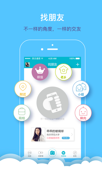 “掌大在手,交友不愁!”全新升級版的移動互聯(lián)網(wǎng)產(chǎn)品“掌上大學(xué)”2.0版本在粉絲的歡聲笑語中正式面世。掌上大學(xué)”2.0版本發(fā)布會暨慶祝Party,江蘇省、市政府相關(guān)部門領(lǐng)導(dǎo)、江蘇省電信領(lǐng)導(dǎo)、掌上大學(xué)粉絲團(tuán)、互聯(lián)網(wǎng)創(chuàng)業(yè)者、產(chǎn)品經(jīng)理、媒體記者等100多人前來參加。真云公司團(tuán)隊(duì)專家與參會者分享了“掌上大學(xué)”倡導(dǎo)的校園社交理念與社交方式。【功能介紹】
