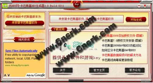 巴斯基Key生成助手 4.3 Build 0804 簡(jiǎn)體中文綠色免費(fèi)版 使用本軟件能夠完全激活卡巴各個(gè)版本, 每個(gè)版本的KEY文件都檢測(cè)有效再發(fā)布,每4個(gè)小時(shí)檢驗(yàn)一次。本工具為綠色版。沒(méi)有任何插件,有什么建議和意見可以反饋給我們 ,我們會(huì)做的更好。