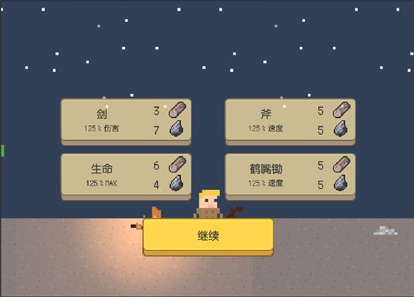 另外,我們需要收集足夠多的材料來(lái)進(jìn)行升級(jí),除了已經(jīng)升了一級(jí)的伐木、采石等級(jí),我們的武器和生命值也需要升級(jí),并且建議重點(diǎn)升級(jí)武器,這樣可以更好地應(yīng)對(duì)生命值增多的怪物。