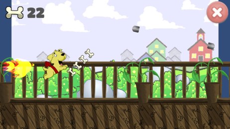 狗狗身上穿上了噴火器裝備,躲過各種障礙為了獲得更多的骨頭。游戲玩法很簡單,通過點(diǎn)擊屏幕控制狗狗身上的噴火器裝備,獲得骨頭。注意身邊的激光裝置。