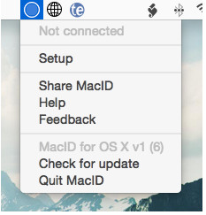 先在Mac上啟動MacID客戶端,Menubar上找,默認(rèn)當(dāng)然是未連接,選擇「Setup」: