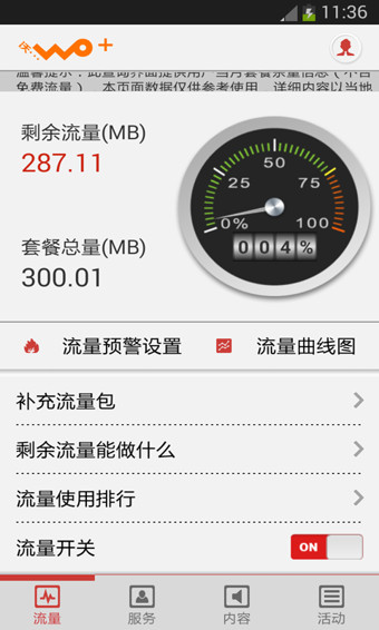 沃流量是中國聯(lián)通官方版手機(jī)流量服務(wù)客戶端。官方權(quán)威信息,數(shù)據(jù)及時、準(zhǔn)確,綠色、安全、無廣告。沃流量客戶端,助您實(shí)時掌握手機(jī)流量使用情況,避免超流量造成額外費(fèi)用支出。還可以查詢熱門流量產(chǎn)品使用排行,結(jié)合您的資費(fèi)安全選購聯(lián)通流量包產(chǎn)品。