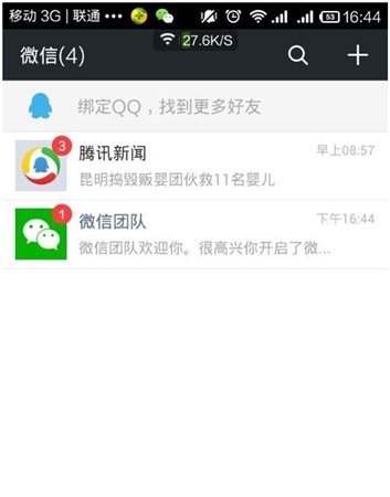 7、現(xiàn)在這個(gè)時(shí)候 你肯定沒(méi)有一個(gè)好友了,所以你要自己去加好友,或者綁定你的QQ帳號(hào),以后你就可以用QQ帳號(hào)登入了,當(dāng)然,你手機(jī)通訊錄上開(kāi)通了微信的都是加為好友的。
