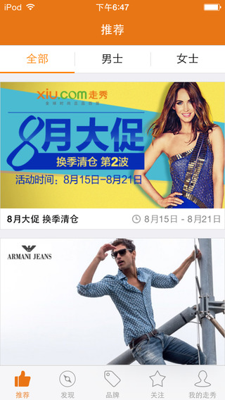 走秀網(wǎng)Android客戶端是走秀網(wǎng)推出的移動購物應用,每天和網(wǎng)站同步為消費者提供最實惠的促銷商品,女裝、男裝、鞋靴、配飾、運動、化妝品、包包、奢侈品、手表等上千款精品,只賣讓你瘋狂的價格。