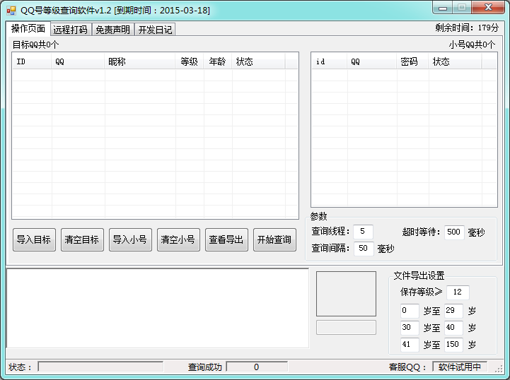 (1)可查詢(xún)QQ等級(jí),分類(lèi)導(dǎo)出;(2)可查詢(xún)QQ年齡,分類(lèi)導(dǎo)出;