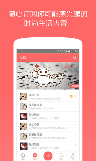 時尚、護膚、美妝、微整四大板塊,隨時隨地傳播交流資訊,記錄美麗成長日記