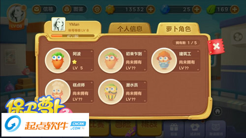 點(diǎn)擊可以查看所有的個(gè)人信息。例如你獲得的獎(jiǎng)杯數(shù),道具全清數(shù),好友賽成績,分?jǐn)?shù)加成信息。還有各種可愛的蘿卜角色呀~YMan下面會(huì)告訴大家怎么兌換角色喲。