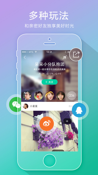 想和熟悉的好友私下嗨?這里還能創(chuàng)建指定好友可見的密友圖吧,通過分享到微信、微博、qq等,邀請(qǐng)親愛的的小伙伴一起進(jìn)吧玩耍。特別定制的分享功能,讓小伙伴們可以通過分享鏈接急速進(jìn)吧,隨時(shí)隨地拍照分享。