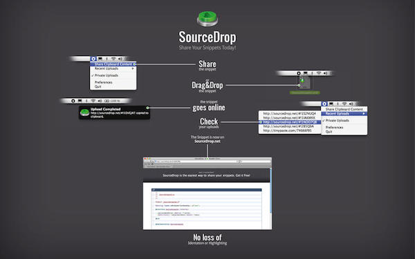1、拖放降源的選擇或文件在OSX菜單欄中的圖標(biāo)SourceDrop在屏幕的右上角分享片段。