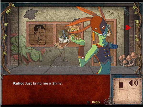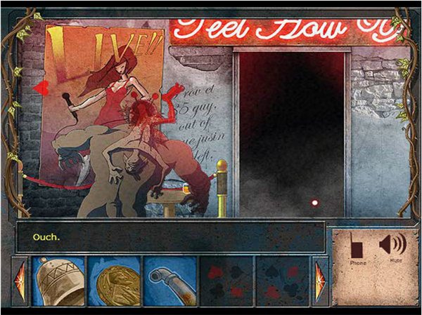 出門前往街道然后向右到酒吧門口,門口有人把守,有兩種方法通過:第一種是先前在垃圾桶邊上有一根鐵管,可以用它直接把守衛(wèi)揍扁;另一種是和另一邊的小混混對話,用那枚硬幣買下他賣的蘑菇,然后放進(jìn)守衛(wèi)的酒里面,轉(zhuǎn)個身再回來,會發(fā)現(xiàn)守衛(wèi)已被毒死。