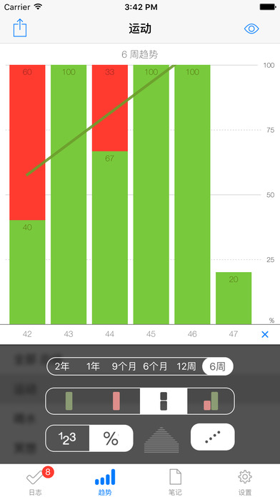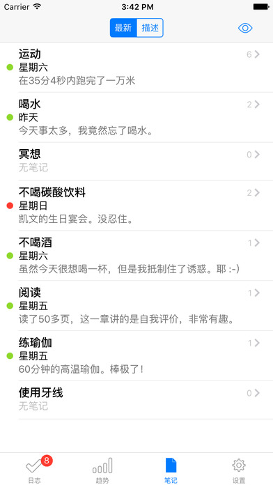 way of life是iOS平臺上一款非常特別的手機(jī)應(yīng)用軟件嗎,這款軟件可以幫助用戶對自己的生活習(xí)慣進(jìn)行養(yǎng)成,用戶可以通過該軟件將自己每日要做的事情、學(xué)習(xí)的內(nèi)容等記錄下來,并且添加備注,該軟件會將你的生活習(xí)慣以餅狀圖、趨勢圖等形式呈現(xiàn)出來,讓你可以更清楚地知道自己每日的計劃,并及時完成,養(yǎng)成一個良好的習(xí)慣。