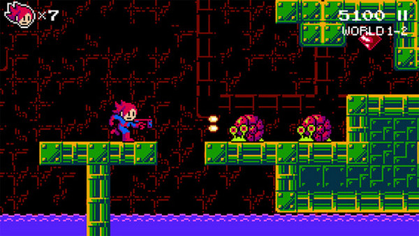 本作復(fù)古像素風(fēng)的畫(huà)面對(duì)于大多數(shù)人來(lái)說(shuō)實(shí)在有些欣賞不來(lái),比紅白機(jī)時(shí)代的許多游戲畫(huà)面都不如,人物的造型設(shè)計(jì)頗有幾分洛克人的味道,甚至連舉槍姿勢(shì)都很像。而太空怪物的巢穴頗有魂斗羅的感覺(jué),神秘的太空巢穴、各種可怕的星際怪物頻繁出現(xiàn)在場(chǎng)景當(dāng)中,科幻色彩非常濃厚,一下子又令人回到了那個(gè)射擊闖關(guān)游戲橫行的年代。