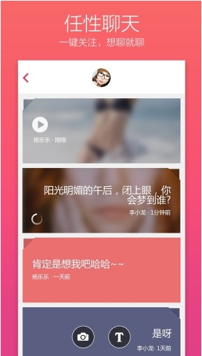 遇到投緣的人,不用五百次回眸,也不再擦肩而過,一鍵關(guān)注,來一場最純粹最任性的聊天。