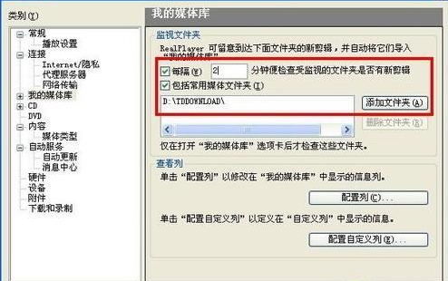 其實(shí)這是在RealPlayer獨(dú)有的特色功能之一,用戶首先打開軟件的“首選項(xiàng)”對話框,接著切換到“我的媒體庫”選項(xiàng)卡,先行選中該選項(xiàng)卡上方的兩個(gè)選項(xiàng)并分別進(jìn)行相應(yīng)的設(shè)置,這里筆者在“每隔XX分鐘便檢查受監(jiān)視的文件夾是否有新剪輯”中設(shè)置的是“2分鐘”,而在“包括常用媒體文件夾”中筆者導(dǎo)入的是迅雷默認(rèn)下載文件存放路徑“D:\TDDOWNLOAD”,最后在該對話框中單擊“確定”,這樣RealPlayer11就會(huì)自動(dòng)每隔2分鐘將迅雷中已經(jīng)完成下載的所有媒體文件批量導(dǎo)入到RealPlayer11的“我的媒體庫”中,進(jìn)而自動(dòng)實(shí)現(xiàn)播放同步。