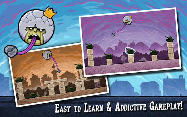 古怪之王是一款即搞笑又好玩的休閑小游戲,游戲中詭異的畫面和那略顯重口的舌頭,都讓人很好奇這究竟是一款什么樣的游戲。仔細(xì)一玩你才會(huì)發(fā)現(xiàn)這款游戲的精華所在。一個(gè)漂浮在空中的圓形的腦袋,戴著一個(gè)貌似是石頭做成的帽子,上邊頂著金色的王冠,這就是我們的游戲主角。它吐著長長的舌頭,卷起屏幕左上角的石塊,左右晃蕩,而我們要做的只是找準(zhǔn)時(shí)機(jī),釋放那塊石頭,把目標(biāo)砸得粉碎。游戲的關(guān)卡非常多,所以想要完美完成恐怕是要花上一點(diǎn)時(shí)間的,但是相信它的獨(dú)特玩法會(huì)讓你覺得這時(shí)間花的很值。