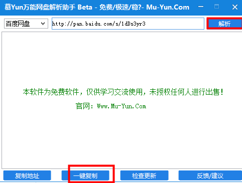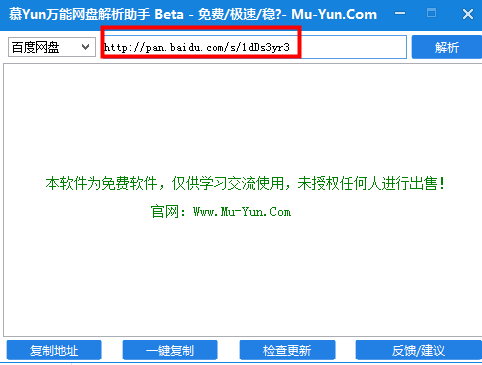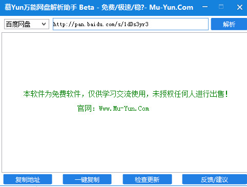 百度網盤、新浪微盤、樂視云盤、360云盤、華為網盤、即得網盤、微云網盤、天空網盤等熱門網盤慕Yun萬能網盤解析助手使用方法:
