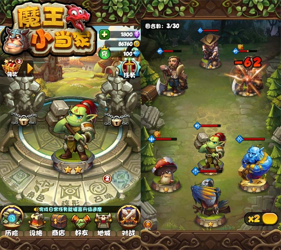 【打破傳統(tǒng)格局 創(chuàng)新雙戰(zhàn)斗體系】《魔王小當家》創(chuàng)新地將卡牌和塔防融合到一起,由此衍生出雙戰(zhàn)斗體系,即進攻玩法與防守玩法。進攻玩法,玩家可組建自己的進攻卡組,對敵人據(jù)點發(fā)起猛攻。防守玩法:玩家可在不同的地下城中,布置防御設施、卡牌部隊,以此阻擊敵人進攻。
