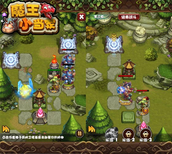 在《魔王小當家》中,每位玩家都擁有自己的專屬地下城,因此誕生了沖突感強烈的PVP資源掠奪戰(zhàn)。如果玩家是掠奪一方,可派遣自己的卡牌隊伍對其他玩家發(fā)起進攻,只要能攻占對方的魔石熔爐,玩家就可獲得對方尚未收獲的所有魔石資源。魔石是用來修建防御塔和升級地城的主要原料。