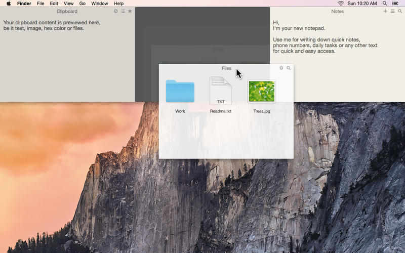 Unclutter for mac是一款運(yùn)行于mac os平臺的商業(yè)行業(yè)軟件,里面包含Clipboard(剪切板),F(xiàn)ile Storage(存儲區(qū)域),Notes(隨手記)三個(gè)功能區(qū),當(dāng)你用鼠標(biāo)或是Trackpad從屏幕頂部向下滑動時(shí),Unclutter for mac菜單就會落下來,接下來的操作就會非常Easy。