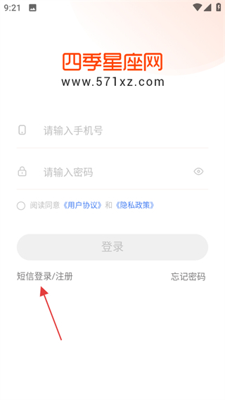 2. 在登錄界面,點(diǎn)擊“短信登錄注冊”,即可進(jìn)入短信登錄注冊界面。