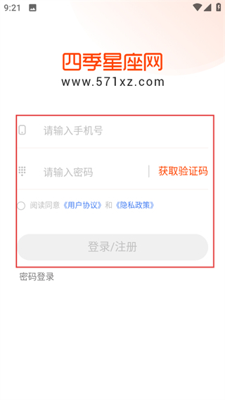 1. 進(jìn)入四季星座網(wǎng),點(diǎn)擊頁面右下角“我的”,即可進(jìn)入登錄頁面。