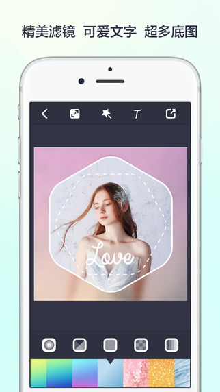 我形我Show是能幫助你處理及美化照片的App,軟件中植入了50多個精心設(shè)計的圖像蒙版效果,通過給圖像增加蒙版幫助你輕松創(chuàng)建有寓意,有深度,有感覺的照片。 此外還可以簡單的在圖像上面加上配文,讓分享的照片更能清楚的表達感情。- 50多個精心設(shè)計的蒙版模版