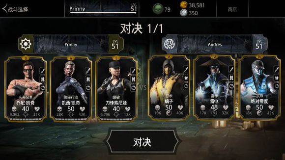 《真人快打 X(MORTAL KOMBAT X)》是一款格斗游戲,手機版并沒有什么劇情,玩家只需要操作角色與對手進行戰(zhàn)斗然后勝利便可,玩法上十分純粹。作身為格斗游戲,玩法上卻并非是普通的格斗游戲那樣選擇人物然后進行對戰(zhàn)的方式,而是卡牌。是的,本作是以卡牌的形式來進行格斗對戰(zhàn),玩家利用手中的三個角色卡牌來進行隊伍組合,然后去挑戰(zhàn)其他隊伍。這就意味著,玩家不能自由選擇自己喜歡的角色去戰(zhàn)斗,只能通過商店來進行抽取,讓本作變成了一款抽卡為主要目的的游戲。