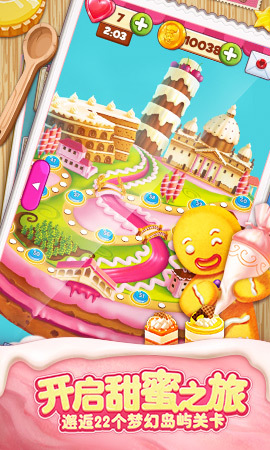 •浪漫氛圍,22個(gè)由巧克力、奶油組成的點(diǎn)心島嶼•樂趣無窮,375個(gè)精心設(shè)計(jì)的美味關(guān)卡