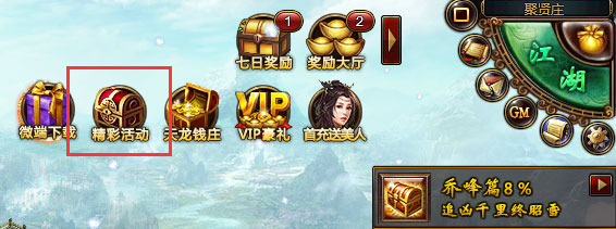 2、登錄游戲——達(dá)到等級(jí)10級(jí)后——點(diǎn)擊界面右上角“精彩活動(dòng)”圖標(biāo)——“激活碼兌換”——“活動(dòng)兌換”輸入激活碼進(jìn)行兌換新手禮包獎(jiǎng)勵(lì)。