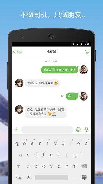 提供便捷的聊天方式,可以方便的通過約車吧免費發(fā)送短信、語音、照片以及精準(zhǔn)的地理位置,與TA進行各種互動。