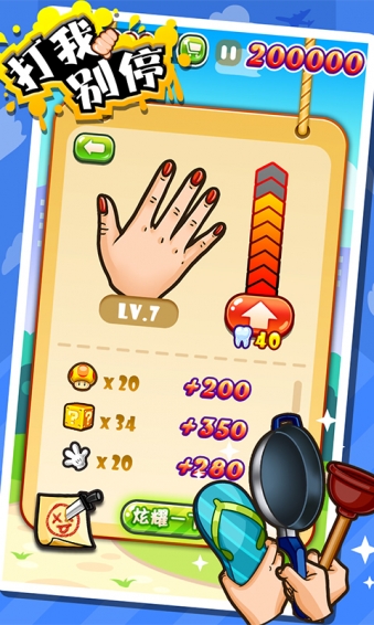 打我別停是一款休閑益智類的小游戲。該游戲非常適合那些鴨梨山大的人玩,在自己空閑的時間拿出手機(jī)打開游戲,將工作上、生活上不舒心的事統(tǒng)統(tǒng)通過該游戲盡情發(fā)泄出來。