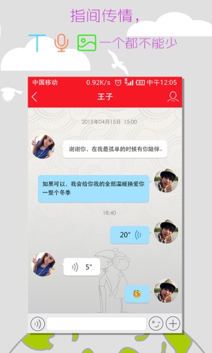 4.免費(fèi)發(fā)送信息,語音,圖片和位置,以全新的方式實(shí)現(xiàn)人與人之間的交流。