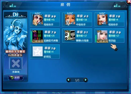 點擊游戲下方的雇傭圖標,可以雇傭好友為DJ、調(diào)酒師、服務業(yè)、保安、領舞來增加舒適度,好 友的等級越高越舒適度也就越多。每次雇傭使用時間為12小時,過期后需要重新雇傭。高等級的 玩家那都很搶手哦,所以下手必須準、快、狠。也可以通過合同雇傭,最長可雇傭48小時。