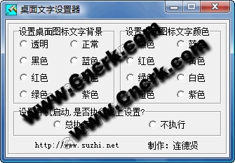 本軟件是一個電腦趣味軟件,當(dāng)您煩躁了電腦桌面單調(diào)的圖標文字時,可用本軟件進行設(shè)置,改變電腦桌面以往不變的圖標文字的顏色以及背景顏色,使用簡單、方便、有趣,您試試就知!