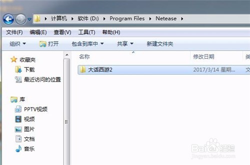 4、我們還可以在大話西游2的文件夾中,我們選中這個(gè)文件夾,按快捷鍵“Shift+Delete”,即可將大話西游2文件徹底刪除,卸載掉。綠色軟件卸載就是通過(guò)刪除文件完成的。