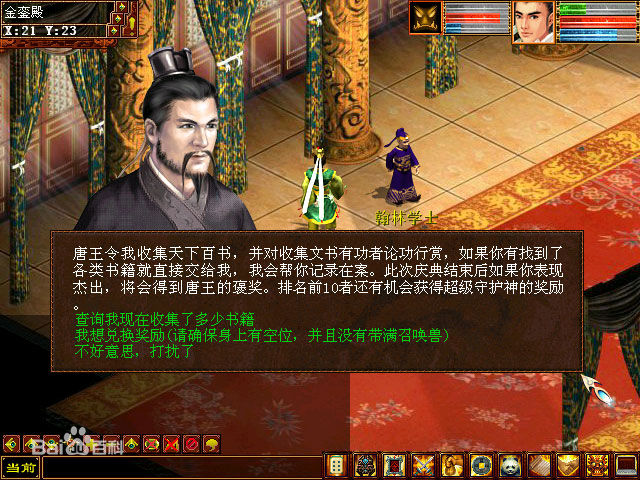 2、殺妖王任務(wù),這是一個(gè)既能練級(jí)(經(jīng)驗(yàn)比常規(guī)任務(wù)多),又能賺錢(100W游戲幣獎(jiǎng)勵(lì))。的玩法(笑)。本來(lái)這個(gè)玩法是很好的,但是妖王沿襲了新大話2的幾率,首先是你不一定能搶到,其次是你搶到了也不一定幾率到。所以個(gè)人不太推薦這種賺錢方式。當(dāng)然如果你有足夠的經(jīng)驗(yàn)跟耐心,那么可能會(huì)是最好的一種賺錢方式,因?yàn)椴恍枰杀?,沒(méi)有每日限制……