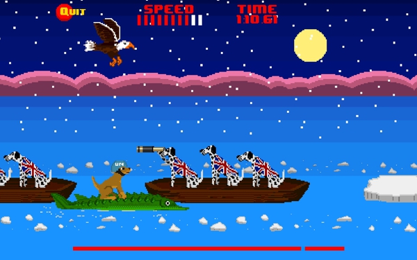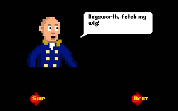 在這個(gè)完全不符合歷史真實(shí)故事的游戲中,喬治華盛頓在前往特拉華時(shí)發(fā)現(xiàn)他忘帶了他的假發(fā)。現(xiàn)在你將加入一群水手來(lái)尋找遺失的假發(fā)。游戲包含了經(jīng)典風(fēng)格的動(dòng)作場(chǎng)景以及可愛(ài)的小狗(除了那些長(zhǎng)得丑的)。包含