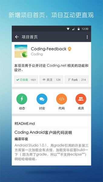 Coding安卓版是一款安卓手機(jī)的商務(wù)軟件,用Coding帶給你高效辦公體驗(yàn),里面的任務(wù)管理和項(xiàng)目討論讓你更好的發(fā)揮想象和管理項(xiàng)目進(jìn)度,還有團(tuán)隊(duì)實(shí)時(shí)在線溝通,讓項(xiàng)目任務(wù)更順利。