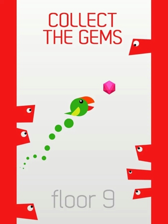 輕輕一點就可以讓你的小鳥飛起來,記得要避開墻上的釘哦!你點得越快,小鳥就飛得越快。邊飛邊收集寶石,用來解鎖精彩的游戲新角色!