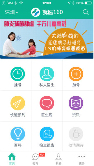 就醫(yī)160,中國最大“預(yù)約掛號”和“咨詢問答”平臺,累計服務(wù)人次超過3300萬!我們力求為您提供最好的移動醫(yī)療服務(wù),包括預(yù)約掛號、咨詢問答、導(dǎo)醫(yī)、醫(yī)療服務(wù)點(diǎn)評、健康管理等,就醫(yī)160您的移動醫(yī)療好幫手。