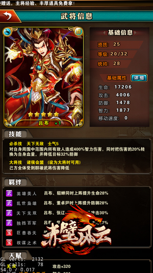 4、武將羈絆——武將與武將之間能互相產(chǎn)生羈絆,武將與裝備、寶物之間也能產(chǎn)生羈絆,“羈絆”能使武將實(shí)力大大增強(qiáng)。
