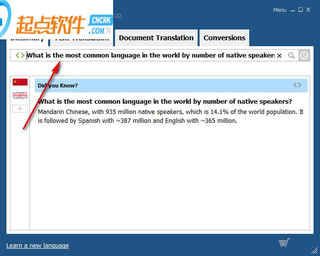 3、如圖所示,這款軟件不僅轉(zhuǎn)換的語(yǔ)言很多,界面菜單的語(yǔ)言種類也很多,這里選擇中文簡(jiǎn)體