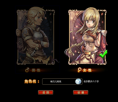選擇初心者性別,輸入自己想要的名字,點(diǎn)擊“創(chuàng)建”即可