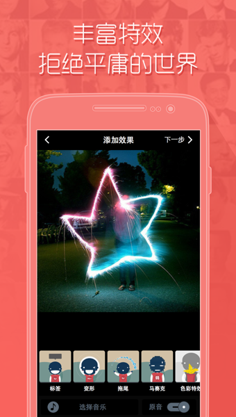 一輕松拍視頻— 手機(jī)拍視頻,操作簡單,隨見隨拍,特效一鍵搞定,畫風(fēng)瞬間切換。—智能跟蹤— 科技很任性,特效能跟蹤。唯美、搞怪或酷炫,風(fēng)格多樣任你選。