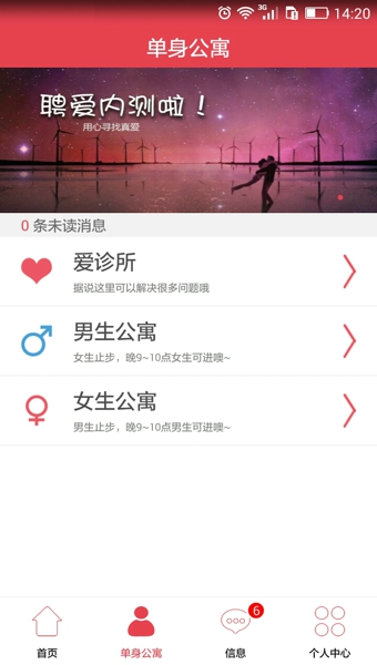 全國首個大學(xué)生戀愛APP,定位于大學(xué)生群體的戀愛社交產(chǎn)品,為大學(xué)生戀愛營造一個良好的氛圍,聘愛的單身公寓板塊將男生與女生的互動分離,又在特定時間開放是我們獨特的功能。遇見最對的人,讓你的大學(xué)不留白