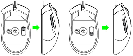 1. 按住Razer Imperator帝王蟒底部的側(cè)按鍵調(diào)整開關(guān) 。