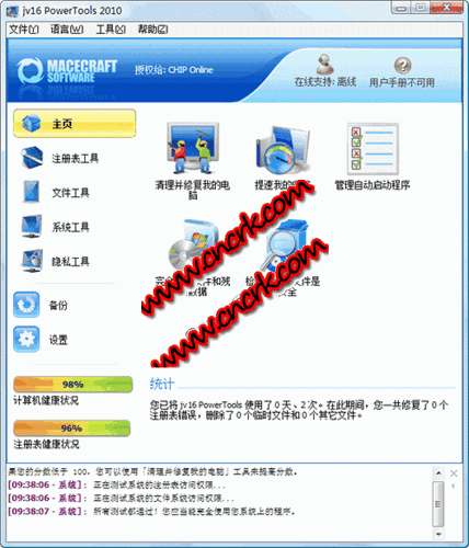 jv16 PowerTools為您提供對(duì)Windows系統(tǒng)的全面管理、控制,可用于注冊(cè)表、文件系統(tǒng)和本地網(wǎng)絡(luò)的監(jiān)控與優(yōu)化。注冊(cè)表工具可以維護(hù)Windows添加/刪除軟件列表;卸載軟件;掃描注冊(cè)表中的無(wú)效鍵值;刪除無(wú)效內(nèi)容;控制系統(tǒng)啟動(dòng)時(shí)加載的程序;電腦的注冊(cè)表。文件系統(tǒng)工具能搜索本地電腦中的零長(zhǎng)度文件、重復(fù)文件、臨時(shí)文件、無(wú)效快捷方式等。設(shè)置好就能加速PC運(yùn)行,還能從中學(xué)到不少東東哦!